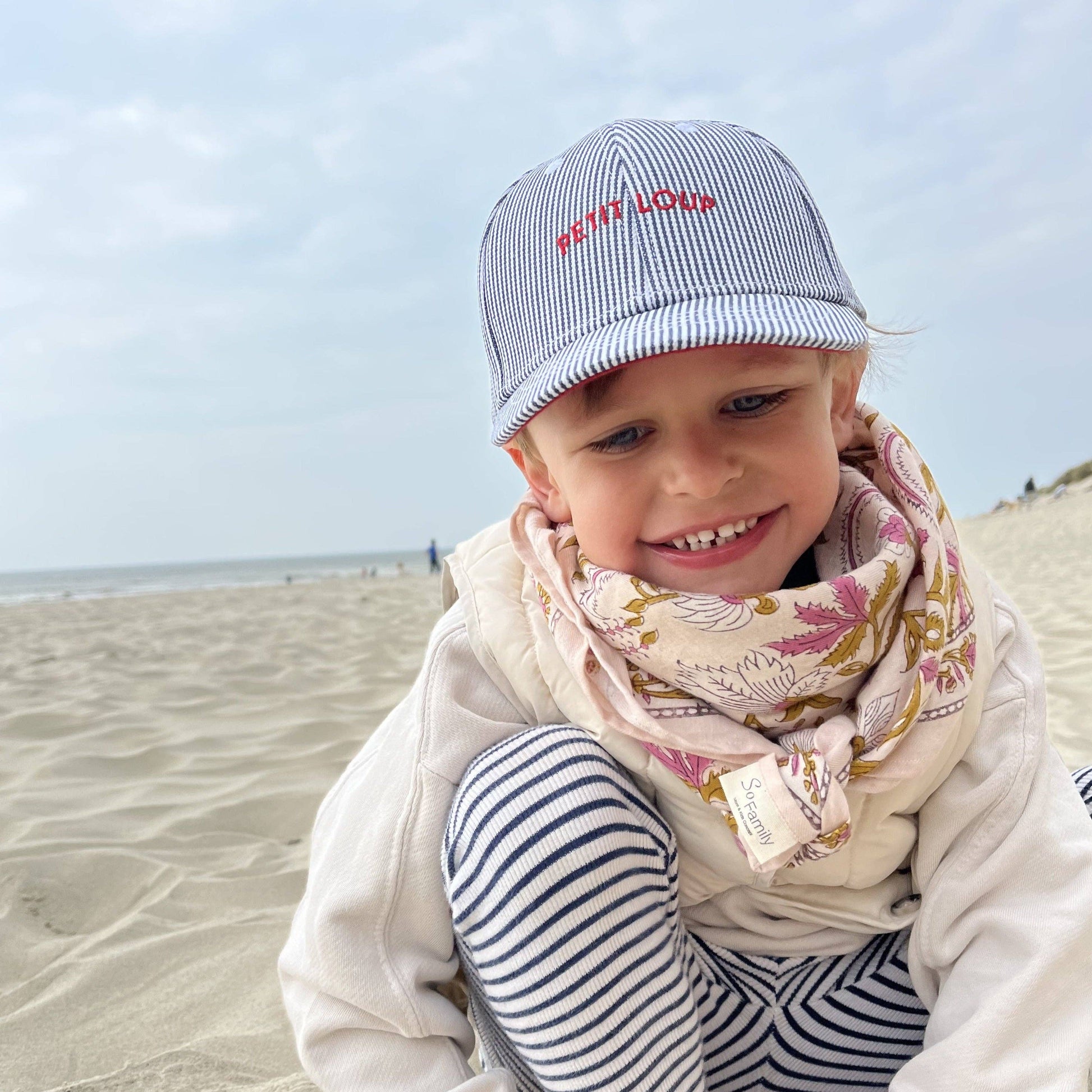 Apportez douceur et couleur aux tenues de votre enfant avec ce foulard artisanal Delhi. Confectionné à Jaipur selon la technique indienne du block-print et teinté avec des pigments naturels, chaque pièce est unique.